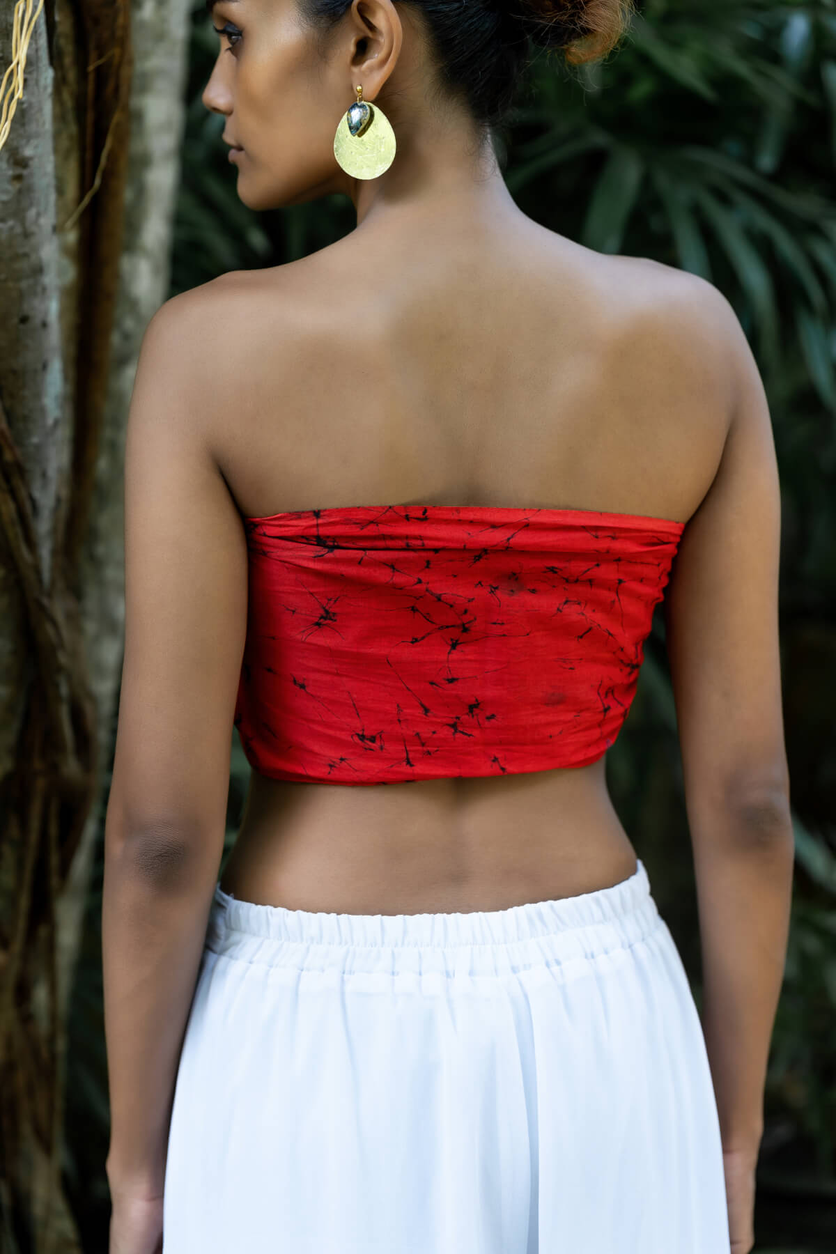 Make a bold statement with Crimson Shadow, a fiercely red tie-up top that embodies confidence and style. This striking piece is designed for the daring, with a vibrant red hue that demands attention. The versatile tie-up design allows you to style it in various ways, making it perfect for those who love to experiment with their look. Whether paired with high-waisted trousers or a flowing skirt, Crimson Shadow ensures you stand out wherever you go.